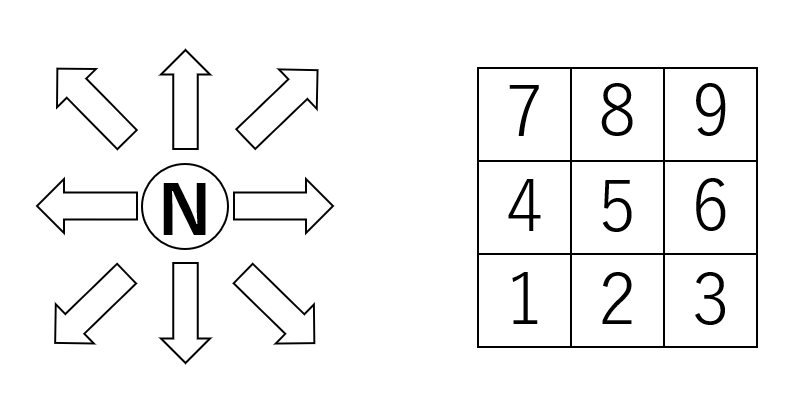 9方向の入力と、テンキー配置を並べて見てみましょう!