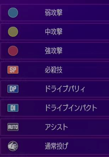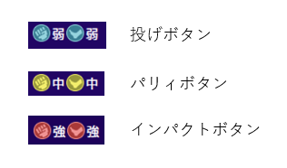 投げボタン、パリィボタン、インパクトボタンは特定のボタンの同時押しです。