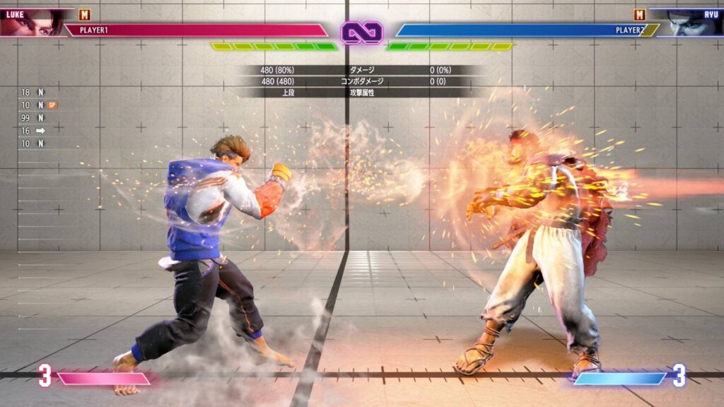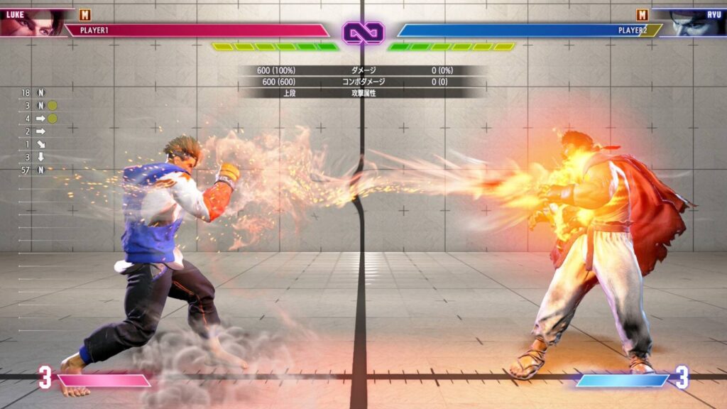 スト6では立ち、しゃがみ、ジャンプという3つの状態があり、それぞれの状態でボタンごとに6種類の違う技が出るので、3×6で18種類の通常技があります。