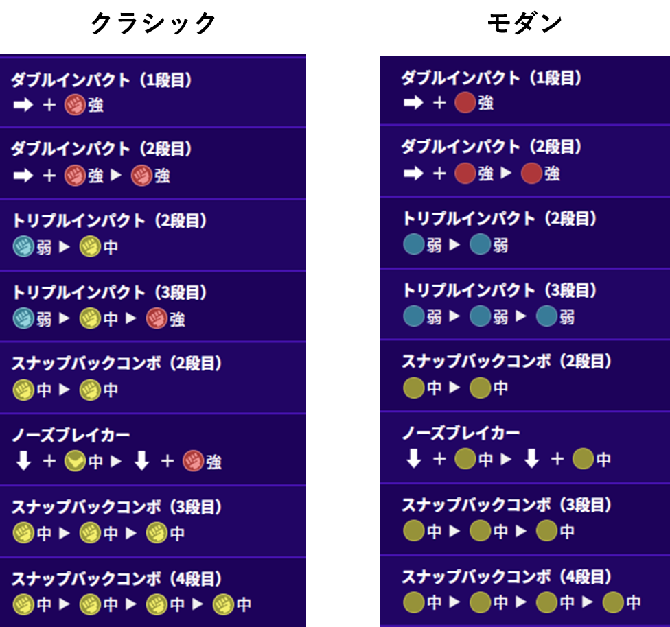 コマンド入力を使ったコンボ自体はモダンにもありますが、クラシックではSAのコマンド入力が必須です。