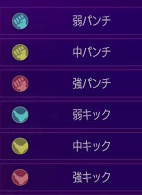 ボタンは6種類だけであり、すべてパンチかキックのボタンです。