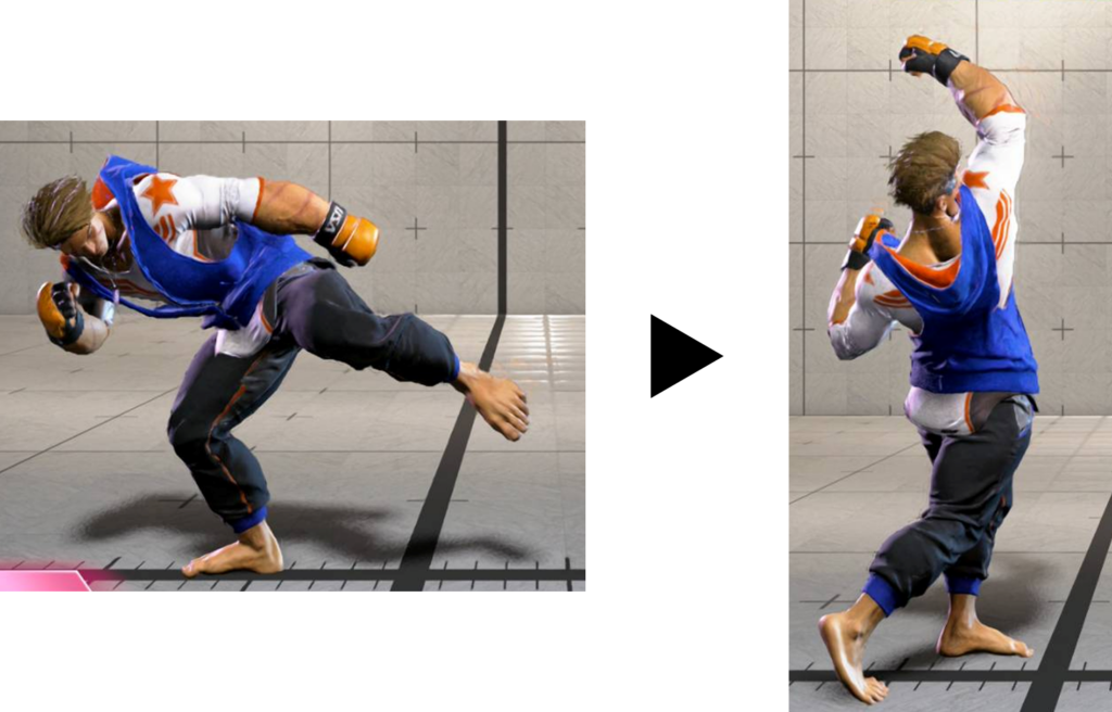 しゃがみ強パンチのモーションが変わっていることが分かります。