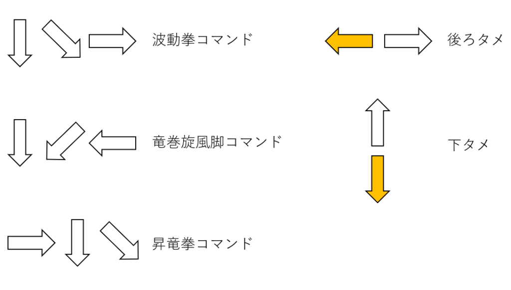 コマンドの一例。すべて自分が左側(1P側)にいるときのもの