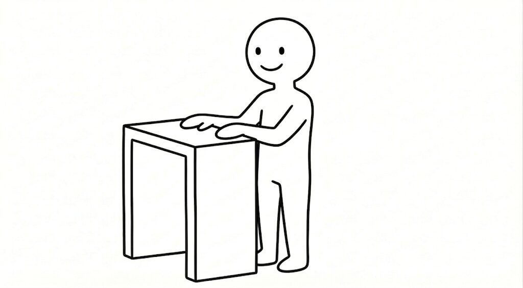椅子の背もたれなど、立っている状態で手が置ける高さの場所に手をついて、その状態でスクワットをします。