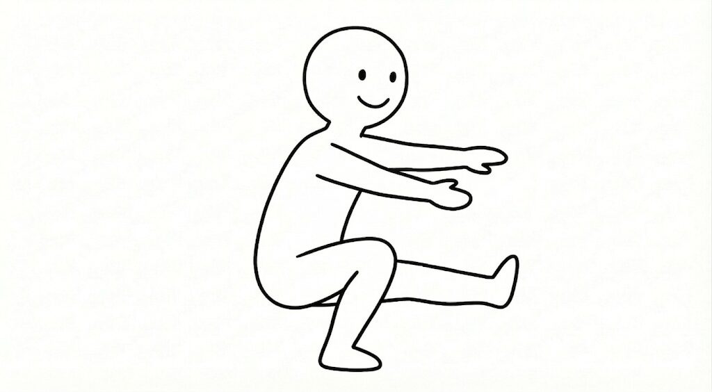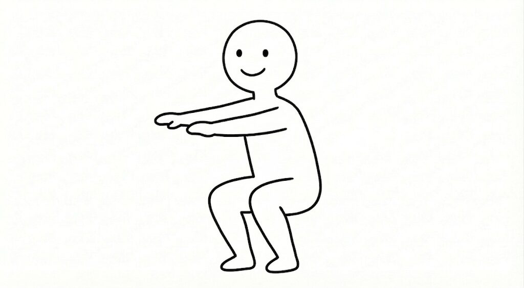 - 椅子に座るようにしゃがんでいく